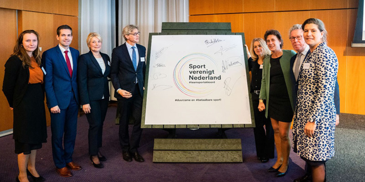 Routekaart Verduurzaming Sport getekend tijdens bijeenkomst Sportief Verbinden