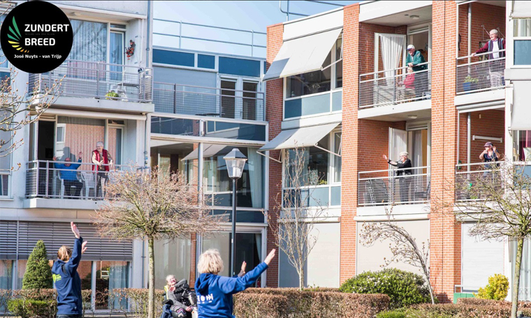 Sinds vorige week zijn er ook activiteiten in samenwerking met lokale omroepen (voor ouderen die minder digitaal vaardig zijn) en 'op locatie' te melden. "Buurtsportcoaches Jeroen, Gitte en Marian in Zundert hebben vorige week vanuit de tuin van verzorgingstehuis De Willaert een beweegles voor de ouderen verzorgd. Die konden vanaf hun balkon aan de les meedoen, en dat deden ze met veel plezier! Geweldig, de lachende gezichten van die mensen, die op dit moment geen bezoek mogen ontvangen! Dit soort initiatieven proberen we zeker op meer plekken te realiseren."