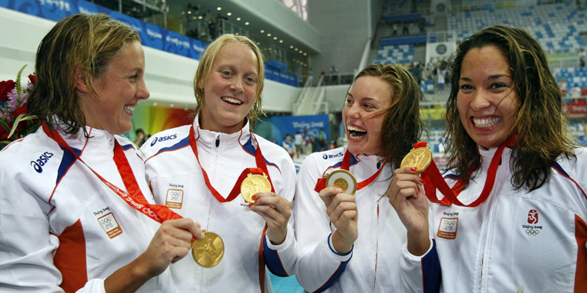 De 'golden girls' van het Nederlandse zwemmen maakten hun faam tijdens de Olympische Spelen in 2008 meer dan waar. In de Watercube in Beijing bezorgden Inge Dekker, Marleen Veldhuis, Femke Heemskerk en Ranomi Kromowidjojo Nederland voor het eerst sinds 1936 de olympische titel op de 4x100 meter vrij. De wereldrecordhoudsters troefden met een tijd van 3.33,76 grootmachten Verenigde Staten en Australië af. Ook Hinkelien Schreuder en Manon van Rooijen, die in de series zwommen, werden beloond met een medaille.