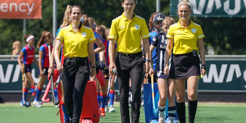 “Haha ja, dat klopt! Het was verplicht, en ik zag een beetje op tegen de cursus. Maar ik vond de cursus eigenlijk meteen heel leuk. Ik ging inzien dat een wedstrijd eigenlijk niet door kan gaan zonder scheidsrechter en dat er niet twee, maar drie teams zijn: het thuisspelend team, de gasten én de twee scheidsrechters. Bij hockey noemen we dat #teamfluit”